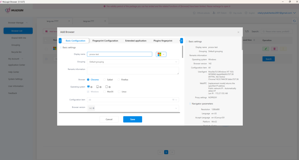 - In MuLogin, open the Browser Profile section.